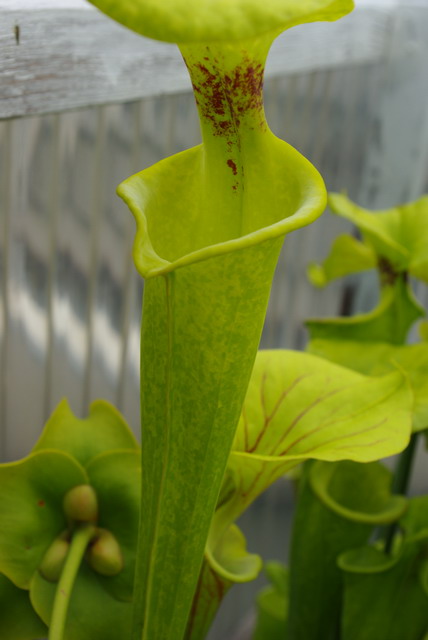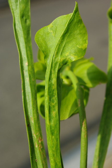 ウイルス病にかかるのはサラセニアが最も多いようですが、ほとんどの場合栽培条件の悪化で生理現象からモザイク状の斑が入るようです、このような場合は環境が改善されれば元に戻ります。