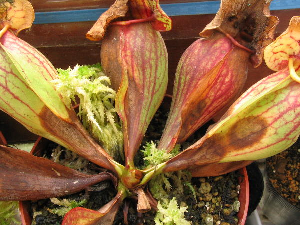 写真のサラセニアは炭疽病だと思われる症状で枯れた物ですが、同じような症状の物を研究機関で調べてもらったことが有り、その葉からは Glomerella属、Venturia属、Sclerotinia属という三つの菌が見つかりました。