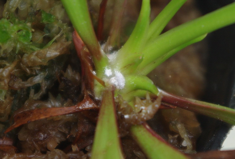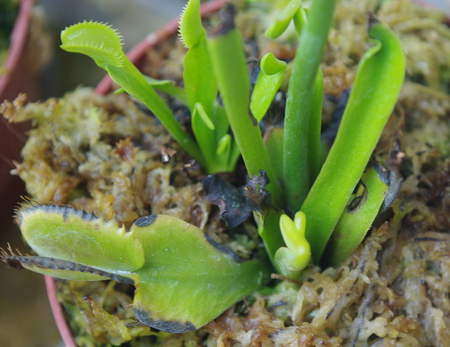 このように新芽の先が次々と黒く変色して来たり、新しい捕虫葉の一部がいきなり黒く枯れるような症状が出たら注意してください。