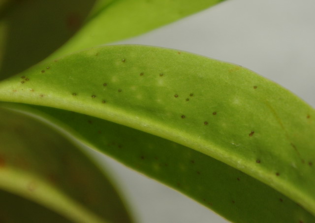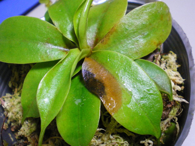 他にもネペンがかかることもあるようですが、過湿や湿度不足などで株が弱った時に葉が黒く枯れてくる事が有り、見つけ次第黒い部分を切り取って薬剤を散布することが必要です。