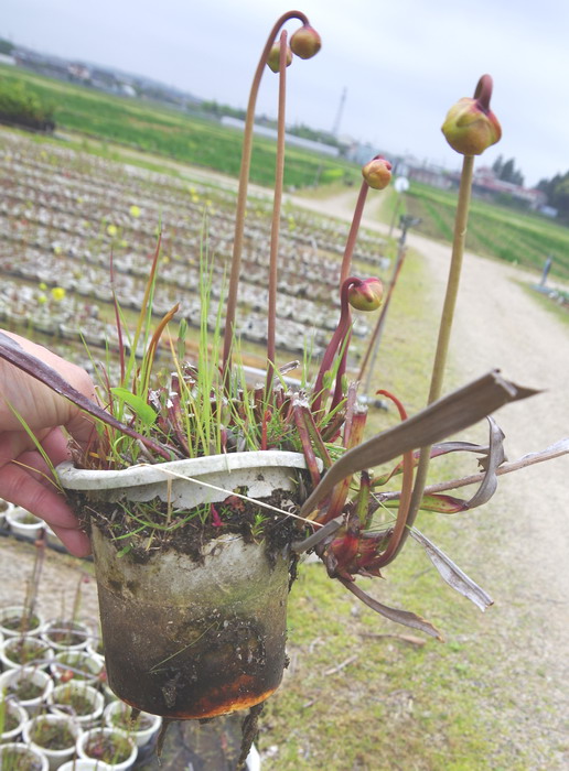 タヌキモの多くは真夏に花が咲きますが、この種類は春から初夏にかけて開花します。