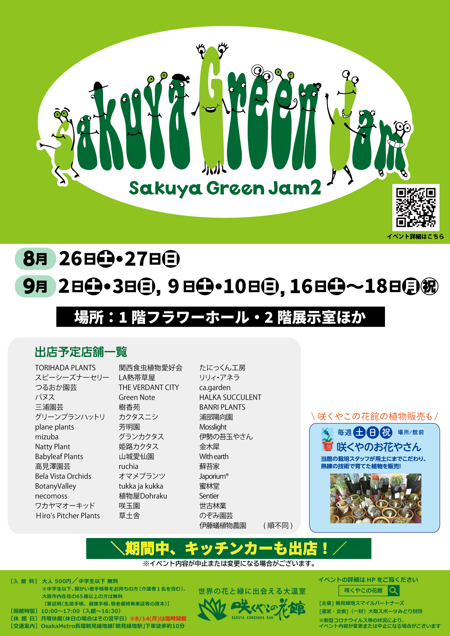 Sakuya Green Jam3 植物販売会イベント | 大阪の植物園-咲くやこの花館- (sakuyakonohana.jp)