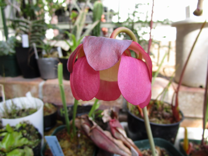 Sarracenia minor の花が咲いていました、サラセニアの中では一番遅く咲く種類で、この花が咲くとサラセニアの花も終りです。
