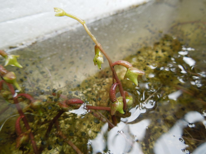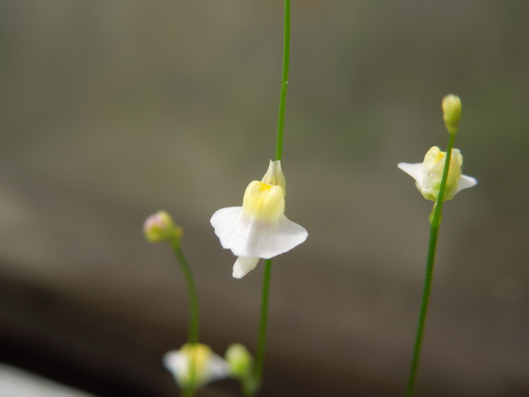 タヌキモは通常葉の間に捕虫嚢が付いていますが、葉と捕虫農が別々に付く所が他の種類と違い所で、考えようによってはタヌキモとミミカキグサの中間のような植物です。