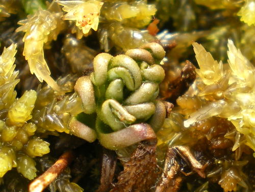 D.rotundifolia)です、小さく丸まった葉が寄り集まって平たい冬芽を作っています。
