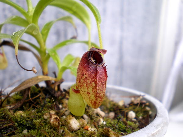 最低気温が25℃にもなると直ぐに枯れてしまいますが、冬場は温度を低めに設定して他の低地性のネペンの生長が鈍る中ぐんぐん成長します。