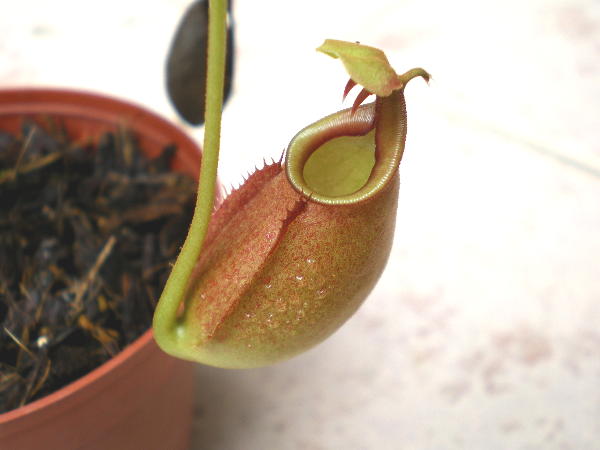 さて、ビカルカラータですが、蓋の下に2本の牙を持つ特徴ある袋を付ける品種です。低地性で高温を好むので、冬場に温度が下がると生長が悪くなったりします。