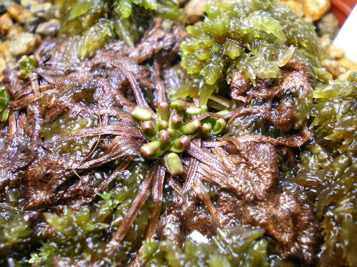 写真はモウセンゴケに冬芽ですが、やっと展開してきました、これから徐々に葉を伸ばしてくると思います。
