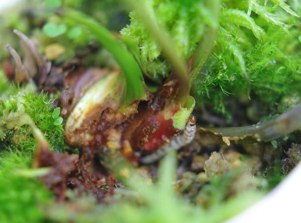 植物の撮影がてら観察をしていると花茎が萎れているサラセニアを発見、またしても立ち枯れ病かと思ったら今度は違いました。
