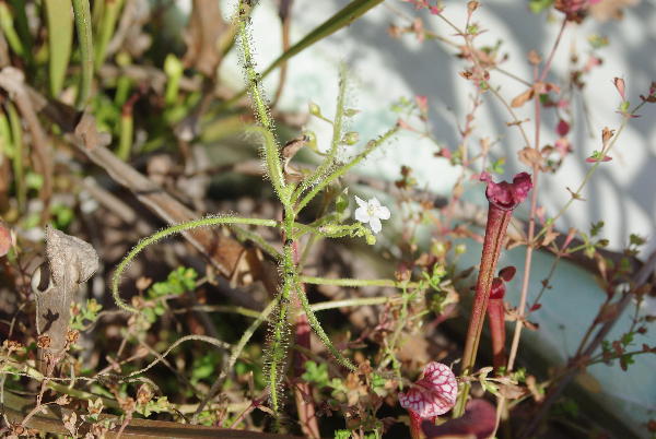 白花種ですが、赤花より寒さに強いのか、毎年11月まで咲いています、さすがに霜が降りるまでは持たないようですが、結構寒くなるまで花をつけます。