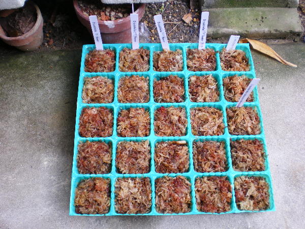 とりあえず場所もないのでポットにまとめて蒔いておきました・・・。(^^ゞ