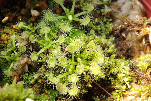 もう一つ、だいび冬芽が展開してきました、こちらはモウセンゴケ(D.rotundifolia)ですが、これはD.rotundifolia alba です。