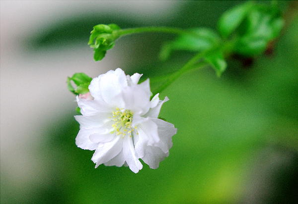 ふと玄関先見ると、見慣れぬ花が咲いていたので、なんだろうと見てみたら今年買った十月桜が早々と咲いていました。