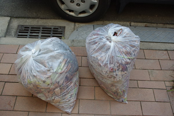 2日でバサバサと全体の1/3ほどを切りましたが、ごみ袋二つになりました・・・。(^^ゞ