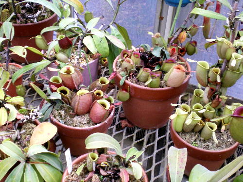 植物園では、夏の展示などで植物を温室から展示室に移動したりするので、あまり湿度をかけて栽培しないと言うことでした。