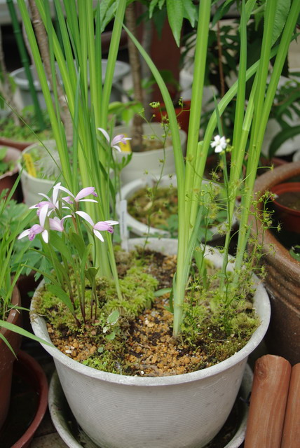 写真の物は、最初野花菖蒲とイシモチソウを植えた物ですが、そこに自生地が同じトキソウを植えてみたところ機嫌よく花をつけています。