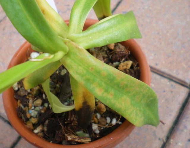 あまり病気にかからないようで実は一番病気にかかりやすい種類かもしれません、ネペンも種類によって病気にかかりやすいとか、かかりにくいというのがあるようですが、葉が薄く表面の滑らかな物は毛が生えている物より病気にかかりやすいようです。