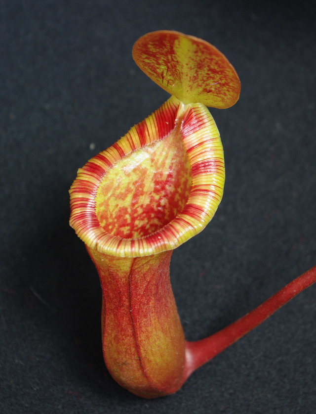 lowii の交配種の中でも非常に出来の良い交配種ではないかと思います、固体差が結構有って大きくなると赤が抜ける個体が有りますが、これはあまり色が抜けない良い個体だと思います。