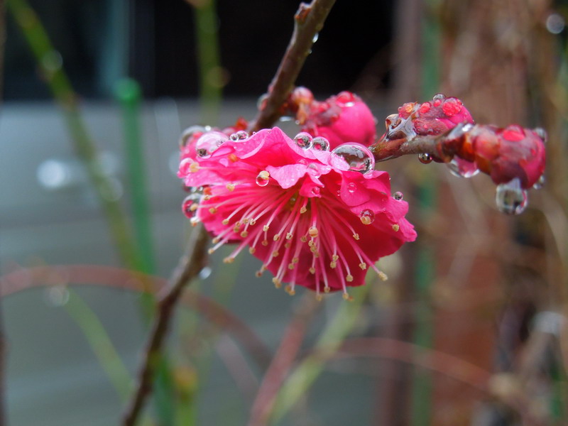 通常2月の初めには花が咲き出す梅もやっと咲き出しました、例年より3週間ほど遅い開花です。