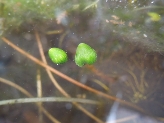 こちらはムジナモの冬芽が水面に浮いてきました、去年も放置状態でしたが、今年は入れ物を洗うべきかどうするか思案中です。