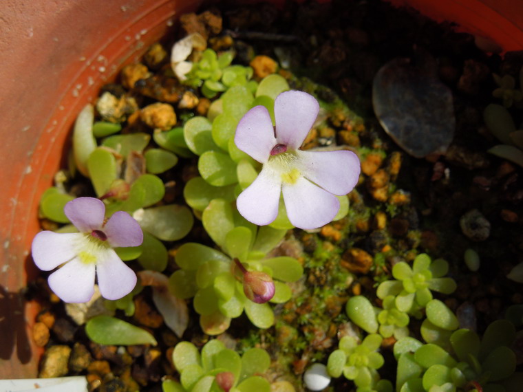 この時期咲のはムシトリスミレ系なんですが、一ヶ月以上前から花芽が出ていたエセリアナがやっと咲きました。