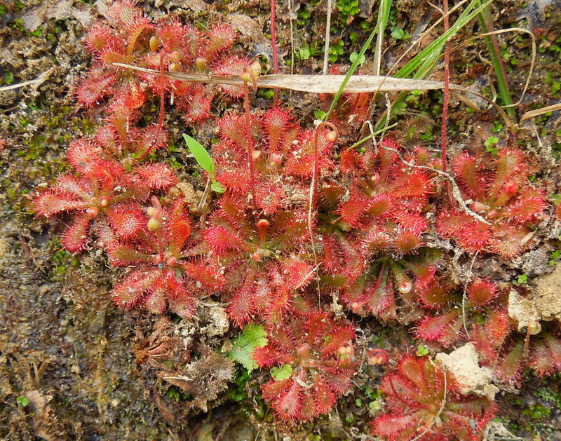 良く日が当ると腺毛が真っ赤になり、群生している様子はまさに緋毛氈を引いた様であると言えます。