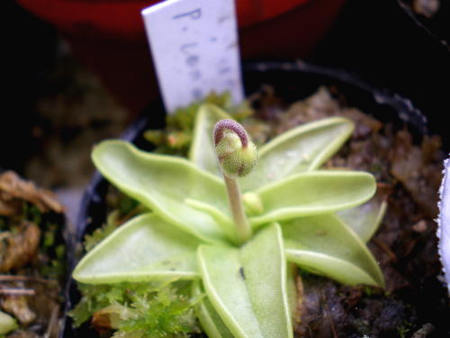 もう1つ、チョットぼけてますがサラセニアです、これは八重咲レウコのセルフを蒔いた物ですが、2003年に取った種をまいたもので、3年間生育したことになります。