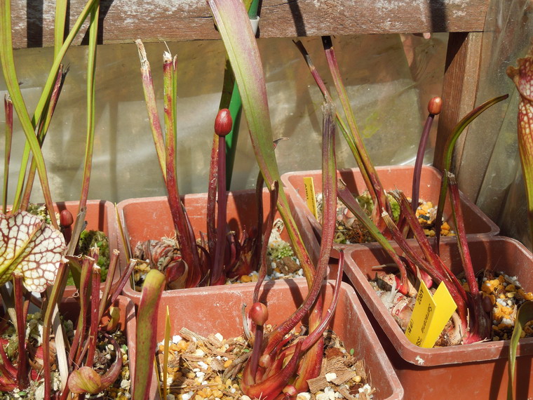 サラセニアの花芽もかなり延びてきた種類もあり、植え替えの必要なものは早急に片付けないといけないようになってきました。