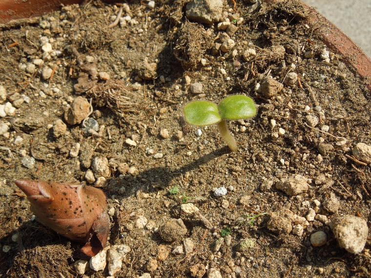 この芽はここに種を蒔いた物ではなかったんですが、どうやら以前播種した鉢の用土を再利用したために種が残っていたようです。