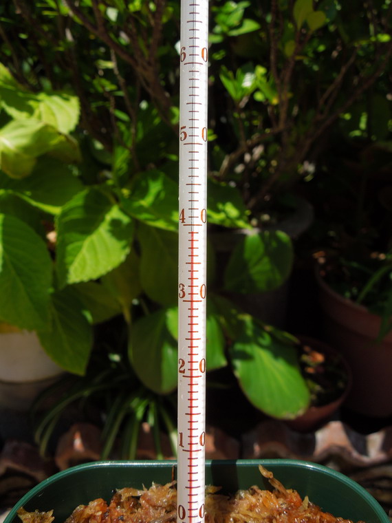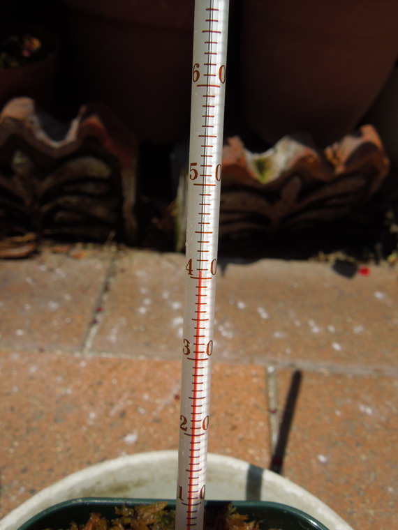 通常もう少し水温は低くなるはずですが、鉢が小さく植物も小さかったため鉢の表面温度が高くなって水温も高めになったようです。
