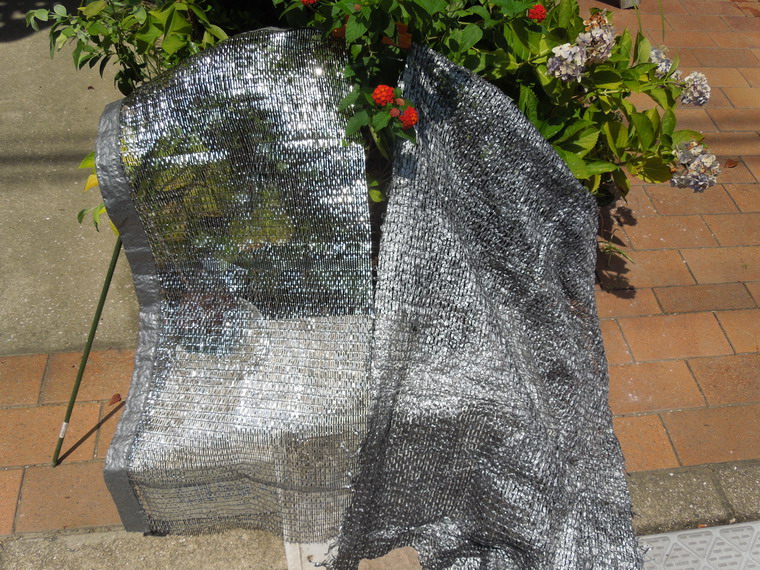 写真ではちょっと分かりにくいんですが、右は濃い目のグレーの色をしたネットで左はアルミホイルのように光るミラーになった物です。