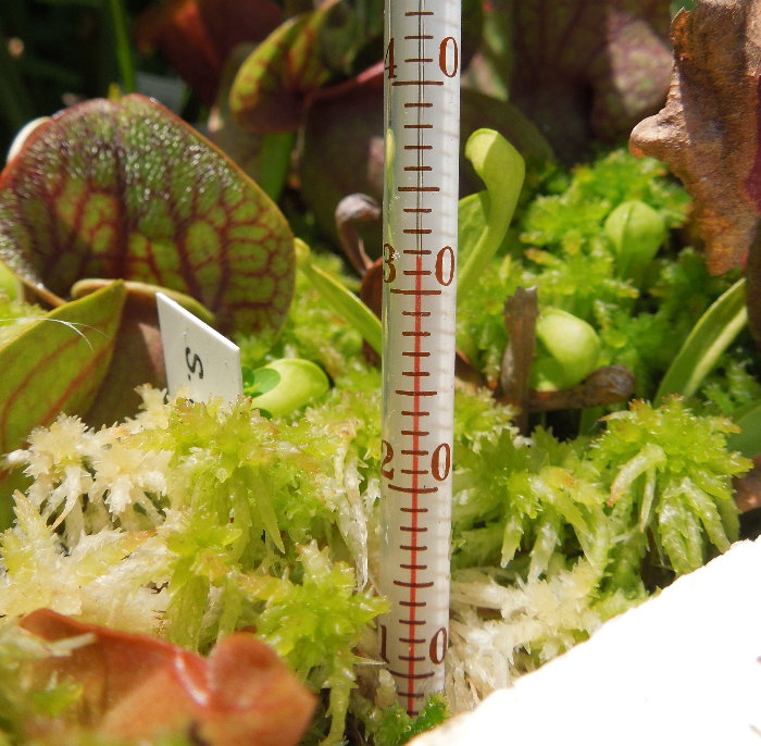 これはサラセニアが入っているので、サラセニアの葉でかなり陰になっているため温度も低いと思われます。