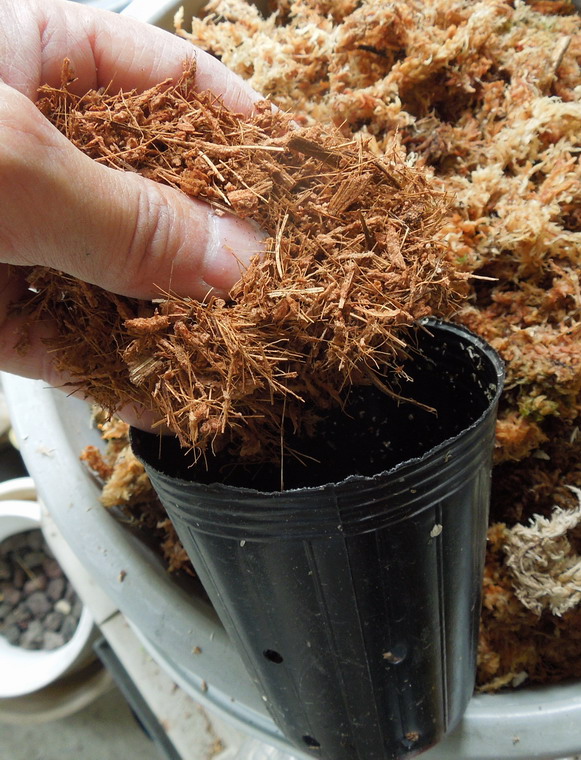 どうも石を使うとそこに入っている根が腐りやすくなるようなので、有機物のほうが良いかと思って、通気性も考えてこれにしています。