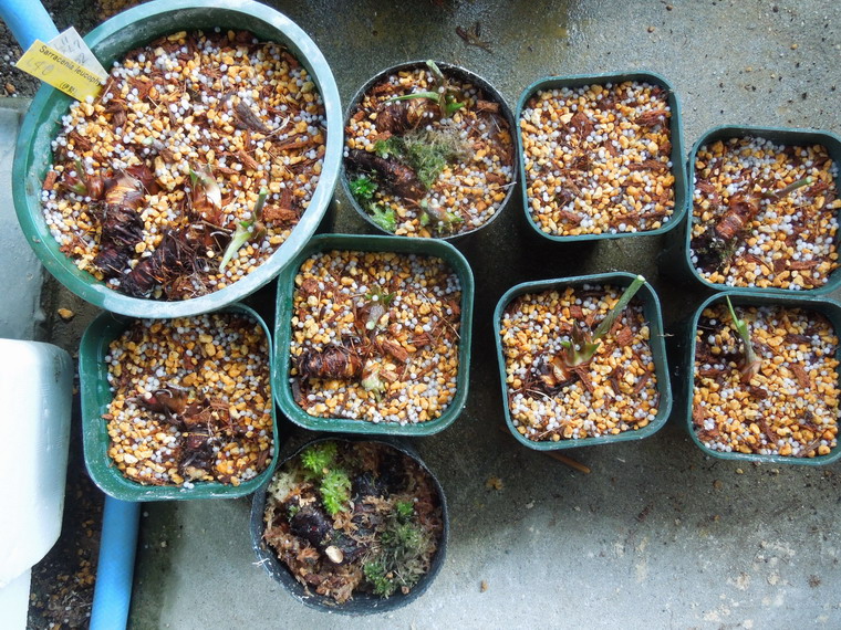 こうなった物は適当に株分けして1芽ぐらいづつに分けますが、すると鉢が一気に増えると言うことになります。