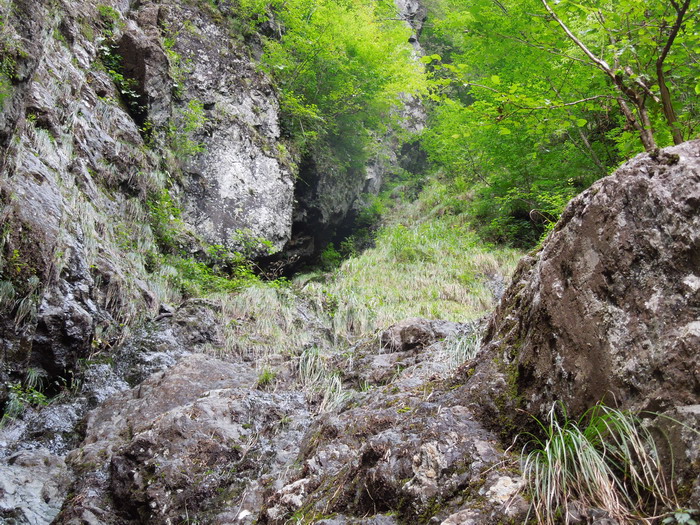 草が生えている所は、草の根が布団のようになって岩を覆っていて、そのに次第に木が生えるようになって来ているようです。