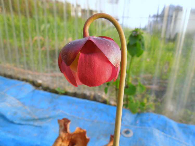 そんな中、今年初めてのサラセニアの花が咲いていました。