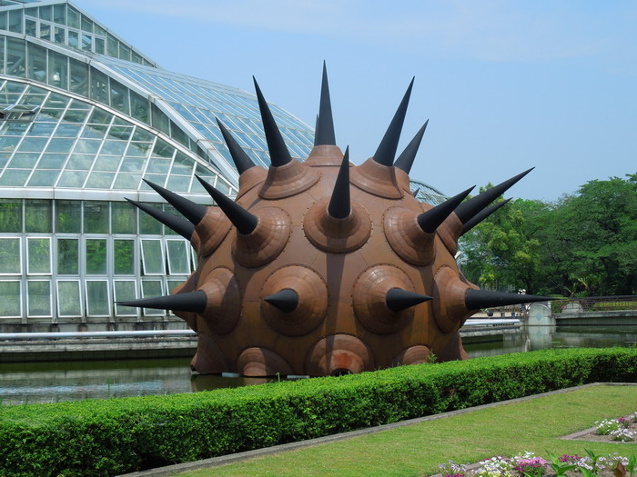 温室の前に変なオブジェがありました、はたして何を目指しているのか・・・。