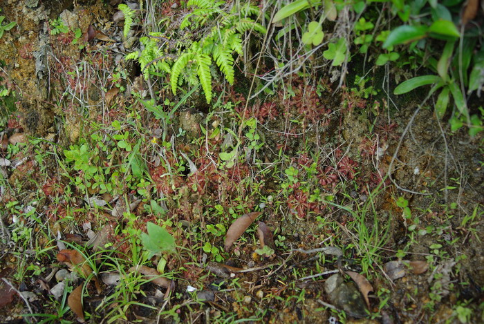 コモウセンゴケは南方系で霜がかかると枯れてしまいます、そのために寒い所でも生えている所では必ず地下水が染み出る垂直な土手のような所になります。