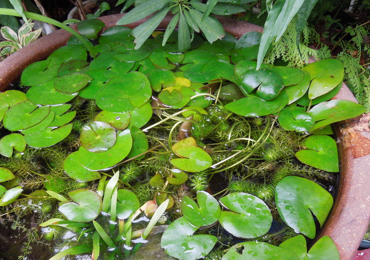 私はこの頃ヒツジグサとか使ってますが、水面を被うので適当にはを取る必要は出てきます。