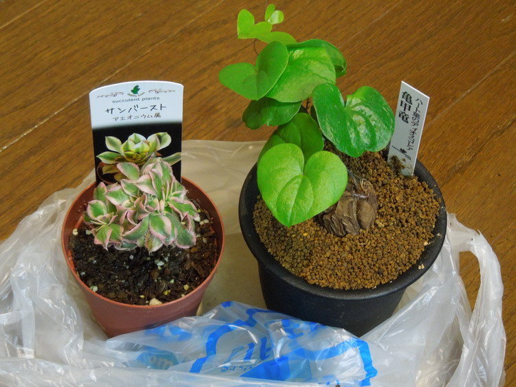 なんだか良く分からない弁慶草の仲間と亀・・・。
