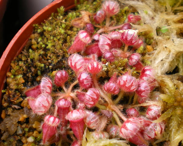 セファロタスの小苗です、屋外の無加温フレームに入れてあるので寒さで紅葉しています。 これもこの頃良く出回ってきたので、入手に苦労することもなくなりました、以前は難物とされていましたが、この頃出回っている物はそれほど気を使わなくても栽培できるようです、ただ成長は遅く環境の変化にも弱いので、栽培にはコツが必要ですが・・・。 ユキノシタと言う名前は花から来ているようですが、どう見ても花より葉のほうがそれらしいのですがどうでしょうか・・。
