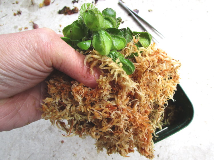 ほとんどの物がそうですが、湿度を高めにして栽培するときはミズゴケを詰めすぎないように柔らかく植えつけます。