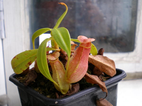 ネペンもいくらか有るんですが、場所が無いので大きい物は有りません。これはいただき物ですが実生3年ほどのN. madagascariensisです、2年ほど前に来た時は、小さい物が数株有りましたが二株しか残りませんでした。