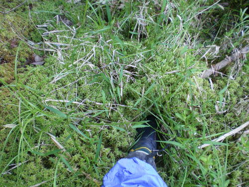 未確認の自生地を確認する為に、道無きいばらの藪を突き進んだりミスゴケが生えるぬかるみをさまよいまし
