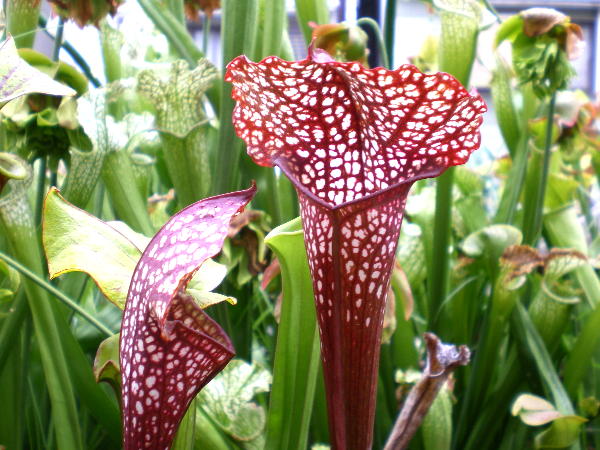 「京扇」と言う名前の付いたサラセニアです、大阪の趣味家が作った物ですが、赤い色と蓋の感じが中々面白い交配種です。