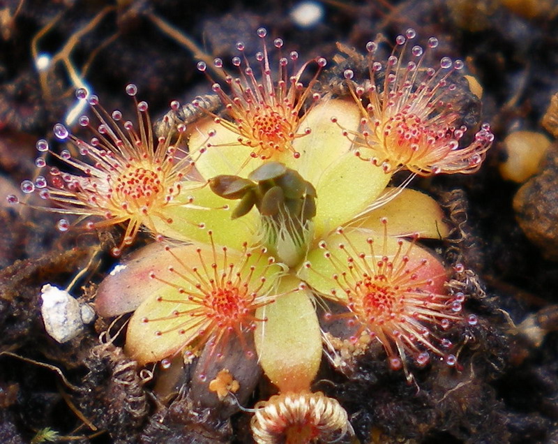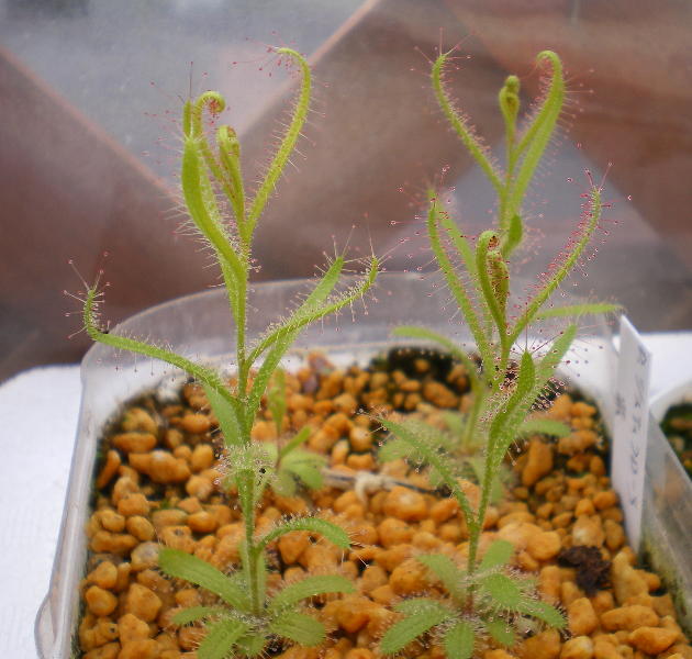 写真はDrosera capensis. all redと言う品種です。夏場は普通の物と見分けが付かなくなってしまいますが、冬場は赤く色付きます。夏場もこの色を維持してくれると良いんですがそうも行かないようです。