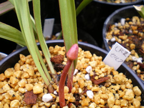 もう1つ、チョットぼけてますがサラセニアです、これは八重咲レウコのセルフを蒔いた物ですが、2003年に取った種をまいたもので、3年間生育したことになります。