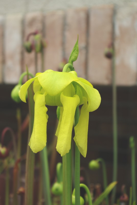 サラセニアも春一番に咲く花は、やはり黄色いフラバやアラタです。