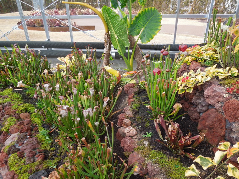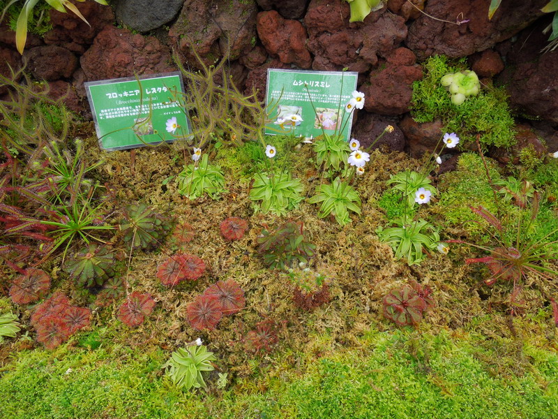 石組みに所狭しと食虫植物が植られて、担当者の意欲が伺えられます。