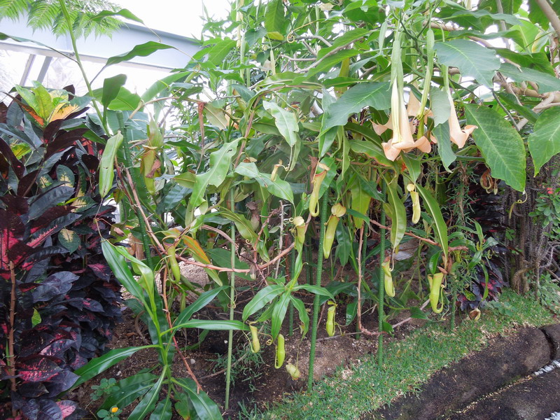 手のとどく所に様々な食虫植物を植えてあり、マニアにはたまらない温室だと思います。